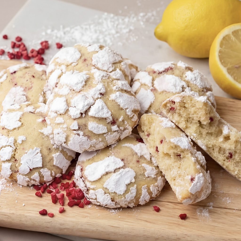 Try adding 8 tablespoons of freeze dried raspberry pieces to the dough for a LEMON AND RASPBERRY CRINKLE COOKIE.